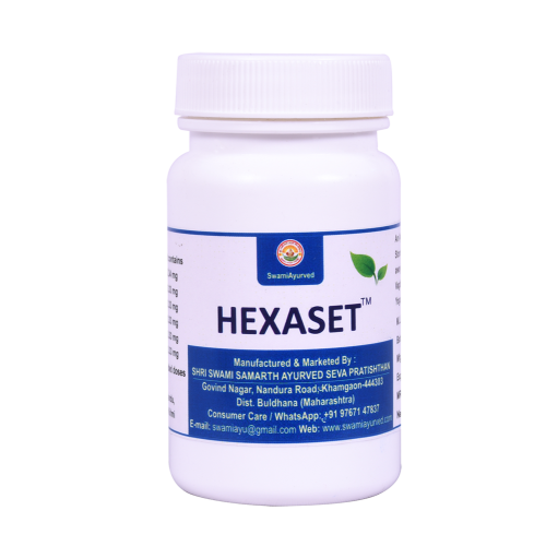 Hexaset Tablet is a classical Ayurvedic medicine. It is in fact, ShadadhranYoga cited by Acharya Vagbhata in the treatment of Kushtha& many other diseases. The name, Hexaset has been adopted to differentiate itself from classical Shadadharan Yoga.