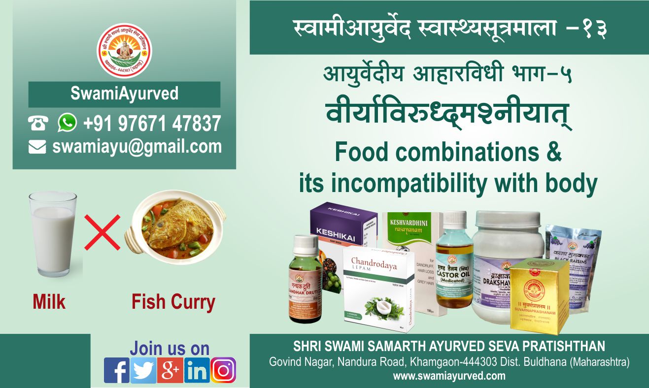 अर्थात अविरूद्ध वीर्यवाले आहारद्रव्य/खाद्यपदार्थ एकसाथ ही खाने चाहिए। मतलब जिन दो खाद्यपदार्थों का वीर्य समान हो उन्हें ही साथ-साथ/ एकसाथ खा सकते है।